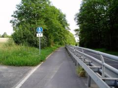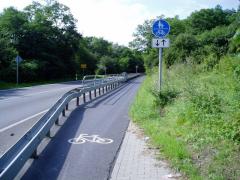 Dalszy odcinek drogi 112. Ze względu na słabą dostępność terenu w miejscu pokonywania skarpy ograniczono przekrój drogi z 2+1 do 1+1 i wygrodzono jeden pas ruchu aby zachować ciągłość ciągu pieszo-rowerowego. Przykład szczególnie ciekawy w kontekście dyskusji na temat przebudowy dróg z poboczami do przekroju 2+1. Niemcy uznali, że na głównych drogach dla bezpieczeństwa ważniejsza jest segregacja ruchu niezmotoryzowanego (1+1+ciąg pieszo-rowerowy) niż zapewnienie możliwości wyprzedzania (2+1).