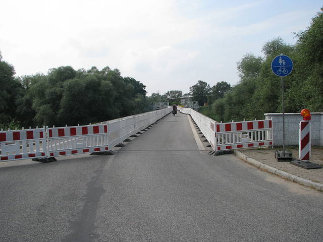 Küstrin-Kietz: podczas remontu mostu utrzymano na nim ruch pieszy i rowerowy.