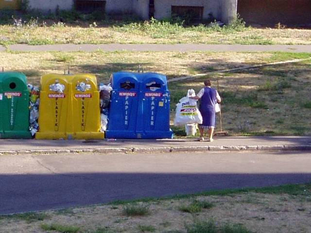 ...i wynosiła go do pojemników na odpady niesegregowane. Zapewne bierze udział w konkursie "Nasza Czysta Warszawa".