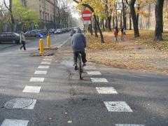 Żaden przepis polskiego prawa nie określa dla jezdni jednokierunkowej, na której można dopuścić dwukierunkowy ruch rowerowy: