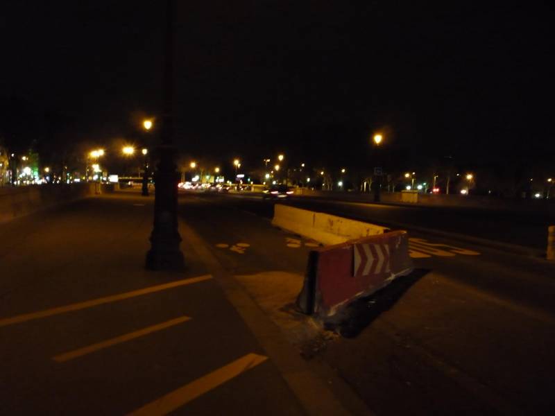 Czasem, np. w przypadku robót drogowych, konieczne jest przerwanie ciągłości tradycyjnej drogi dla rowerów. Wtenczas konieczne jest zastosowanie rozwiązania tymczasowego. Na zdjęciu betonowy zjazd z drogi dla rowerów na chodniku na drogę dla rowerów na jezdni. Obok pas dla autobusów.