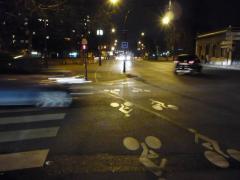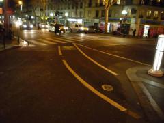 Kontrapas rowerowy wydzielony jest tylko na wyniesionej tarczy skrzyżowania. Dalej ruch odbywa się na zasadach ogólnych. Nie na darmo paryski rower miejski nosi nazwę Vélib' (skrót można rozwinąć jako vélo liberté - wolność rowerów).