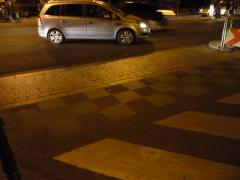 Tu tylko pas dla rowerów. Przy okazji warto zwrócić uwagę, że przyciski przeciw pieszym, tak namiętnie stosowane w Warszawie, w praktyce nie istnieją w miastach na zachodzie w innych celach aniżeli do zgłoszenia szczególnych potrzeb osoby niepełnosprawnej (np. dłuższy cykl świateł czy naprowadzanie dźwiękowe).