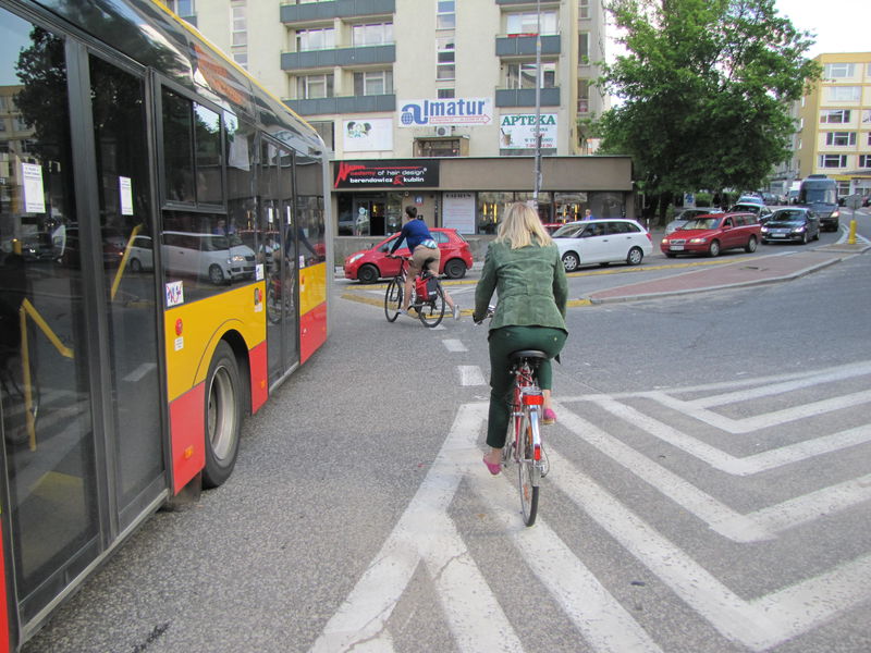 Żeby jednak dostać się na początek pasa dla rowerów w popołudniowym szczycie, trzeba się trochę poprzepychać. Miejsce jest, by zacząć pas wcześniej, trzeba by tylko skorygować położenie separatora.