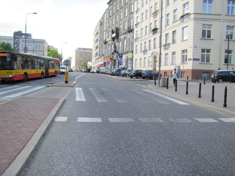 Tym bardziej, że za zakretem jest szeroko i w zasadzie można by doprowadzić pas rowerowy do Świętokrzyskiej (gdzie obecnie są dwa pasy ruchu, a po przebudowie ma być pas rowerowy).