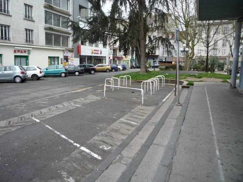 Pozostając w temacie parkingów, stojaki i miejsca parkingowe przy lokalnym krytym targowisku dobrze ilustrują różnice w ilości miejsca zajmowanego przez różne środki transportu.