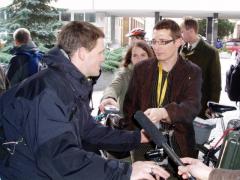 O 13.00 rowerzystów powitała pani Ewa Wolak - przewodnicząca Parlamentarnej Grupy. Pojawiły się też media, które uwieczniły pierwszy w historii III (albo V, bo teraz to nie wiadomo do końca) Rzeczypospolitej zajazd Rowerzystów na budynek na Wiejskiej. Do tego zajazd udany, bowiem nie zakończony, jak w przypadku górników, na kordonie Policji i barierkach wokoło Sejmu.