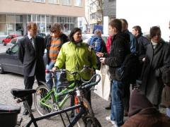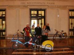 Ale zaczynając od początku. O godzinie 12.50 rowerzyści pojawili się pod Sejmem. Zjechali tu praktycznie z całego kraju - Poznań, Warszawa, Kraków, Wrocław, Toruń - to tylko niektóre miasta, których reprezentacje, na rowerach oczywiście, zawitały do Sejmu. Największa była oczywiście grupa z Warszawy - około 20 osób na rowerach starało się, pomimo wczesnej pory zamanifestować swoją obecnością potrzebę zmian.