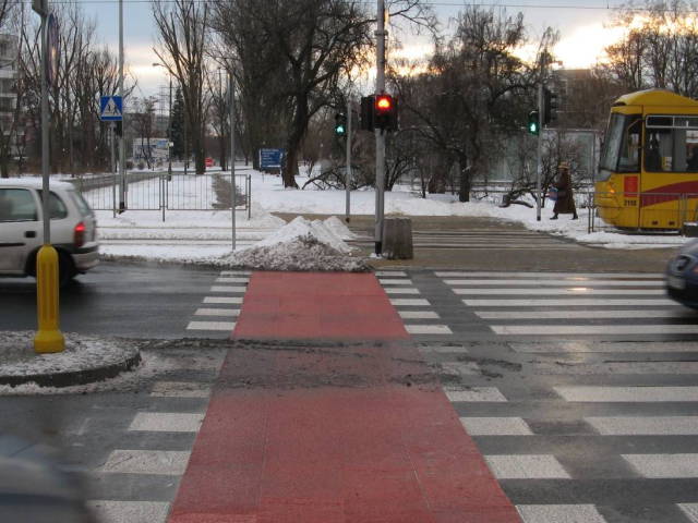 Pierwsze opady śniegu i pierwsze zaskoczenie służb odpowiedzialnych za odśnieżanie miasta. Ścieżka przy ulicy Broniewskiego oczywiście nieodśnieżona, widać tylko ślady przejechania po niej jakimś samochodem. Ale to i tak nic w porównaniu z niespodzianką, jaką zostawili na skrzyżowaniu Broniewskiego / Popiełuszki. Chodnik i jezdnia ładnie odśnieżone, a śnieg... zwalony na ścieżkę rowerową.