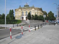 Trudno zrozumieć jaki zamysł przyświecał zawężeniu chodnika na wschód od placu Politechniki do nieprzepisowej szerokości niespełna metra.