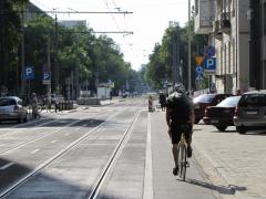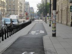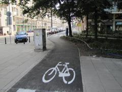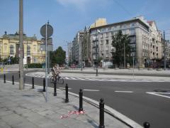 Również od Waryńskiego do placu Politechniki rowerzyści mogliby spokojnie jechać jezdnią w kierunku zachodnim. Wydzielona droga dla rowerów potrzebna jest tylko jednokierunkowo, dla jadących od placu Politechniki, jako objazd przystanku tramwajowego przy metrze.