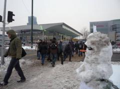 W piątek 3 grudnia przy tymczasowym przejściu dla pieszych przez ulicę Emilii Plater [zobacz >>>] pojawiły się dwa bałwany.