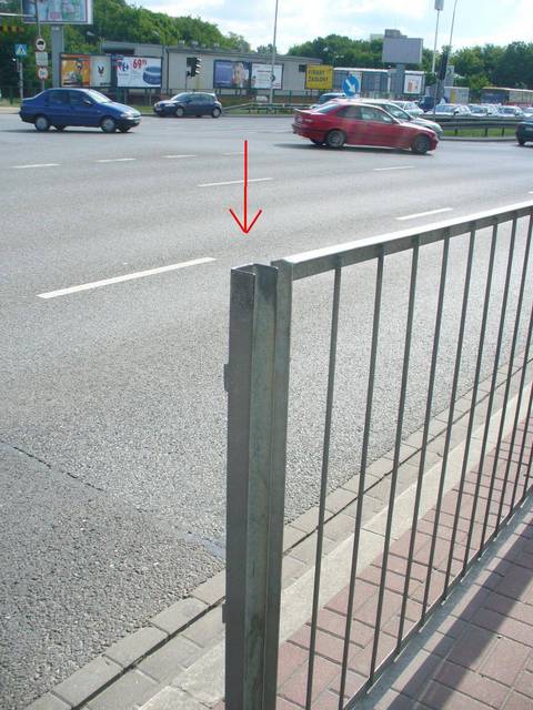 ...czy wyjątkowo wredny słupek na skręcie w stronę przejazdu przez Wał Miedzeszyński w stronę Fieldorfa. Jest on ustawiony ostrą krawędzią dokładnie w stronę rowerzysty, którego zmusza się przy tym do ciasnego skrętu w prawo wokół tego słupka, zaraz po zjeździe z pochyłości. Pół biedy, gdyby stał odwrotnie, ale nie - stoi tak, jakby pełnił rolę zasadzki na ludzi.