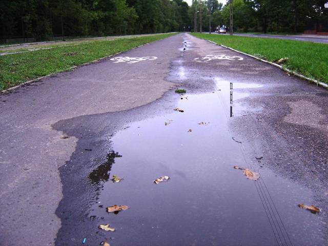 Miejmy nadzieję, że tym razem dzięki większej staranności uda się naprawić to, co spartaczył wykonawca poszerzenia ścieżki, a urząd dzielnicy przepuścił zamiast wyegzekwować poprawki braku odwodnienia widocznego na tym archiwalnym zdjęciu.