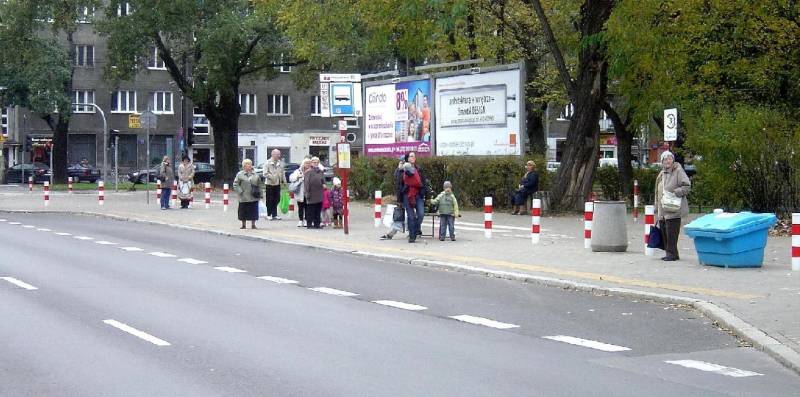 Mimo że przystanek Podleśna IMiGW 05 należy od dawna do bardzo uczęszczanych, oczekujący na nim mają do dyspozycji zaledwie jedną ławeczkę i pień po ściętej akacji (patrz prawy dolny róg tablic reklamowych). O wiacie czy choćby zadaszeniu mogą tylko pomarzyć. I marzą od dobrych dwóch lat.