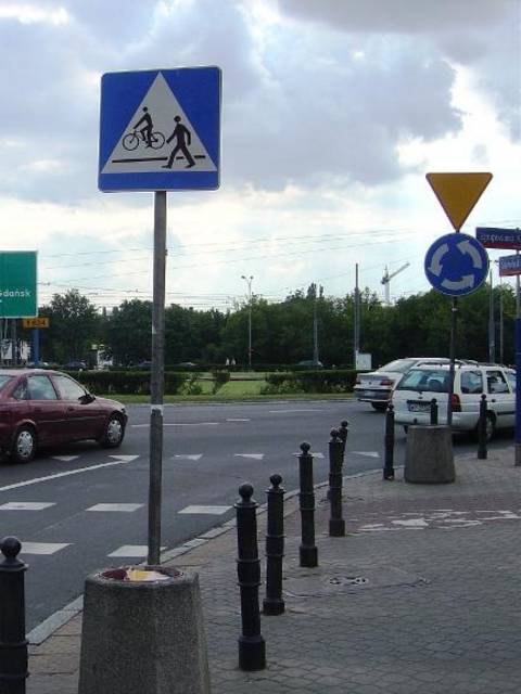Przez kilka lat nic nie informowało kierowców o wjeżdżających prostopadle rowerzystach. (zdj. po lewej). Obecnie powinni być tego świadomi (zdj. po prawej).