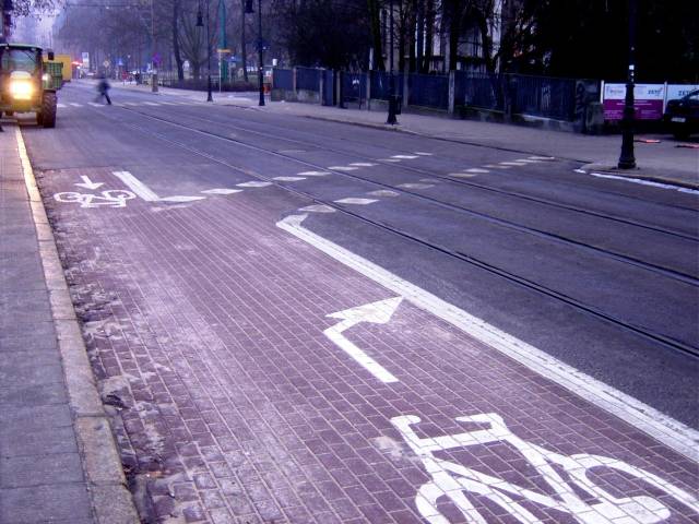 Dalej (na wschód) obowiązują zasady ogólne. Warto zauważyć, że przejazd przez tory biegnie skośnie do nich, i to nie dość że bez sygnalizacji, to jeszcze poza skrzyżowaniem! Czy w Warszawie.... Nie, stop! To ma być krótki fotoreportaż na niedzielę, a nie spędzająca sen z powiek mieszanka horroru z dreszczowcem.
