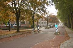 Jeśli jezdnia jest odpowiednio wąska - powiedzmy do 5 m - wystarczy jeden próg wyspowy. Jeśli nie ma krawężników, można ustawić słupki po bokach. Widoczne na zdjęciu rozwiązanie narusza co najmniej 3 polskie przepisy i na pewno nie zostałoby zaakceptowane przez naszych specjalistów od bezpieczeństwa ruchu drogowego, ale w Holandii działa znakomicie. Na zdjęciu okolice Maastricht.