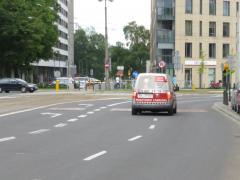 To samo na przejściu dla pieszych w Gdańsku - ulica Dmowskiego przed dworcem kolejowym we Wrzeszczu. Łączymy (część) zalet azylu i progów wyspowych w jednym.