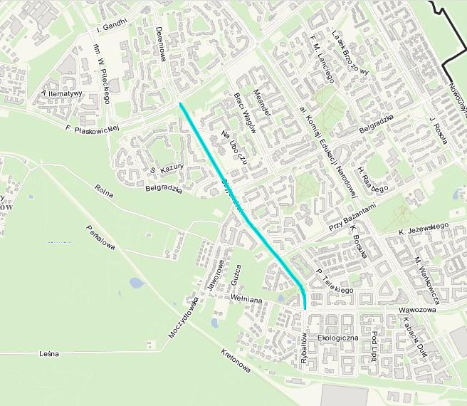 Rekomendujemy wyznaczenie pasów rowerowych w jezdni (ewentualnie budowę drogi dla rowerów). Wraz z planowanymi pasami rowerowymi na ul. Dereniowej stworzą one potrzebny i spójny ciąg komunikacji rowerowej N-S w zachodniej części Wysokiego Ursynowa. Ul. Stryjeńskich ma cztery pasy ruchu dla samochodów, co skłania kierowców do rozwijania nadmiernej prędkości. Zwężenia w okolicach skrzyżowania z ul. Płaskowickiej i w okolicach ul. Wąwozowej sprawiają, że pozostawienie dodatkowych pasów ruchu w środkowej części jest zupełnie nieuzasadnione i niebezpieczne (skłania kierowców do niebezpiecznych zachowań i powoduje tworzenie się zatorów na obu końcach ulicy)