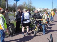 Łatwiej wielorybowi przecisnąć się przez ucho igielne niż peletonowi cyklistów pokonać przejazd przez ul. Broniewskiego. Chwila skupienia i wyczekiwania przed tą niełatwą próbą.