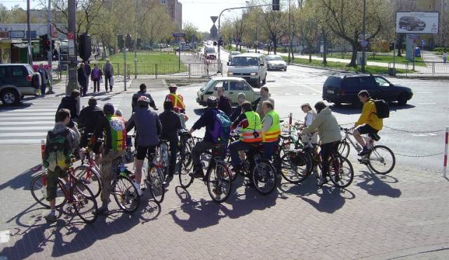 Łatwiej wielorybowi przecisnąć się przez ucho igielne niż peletonowi cyklistów pokonać przejazd przez ul. Broniewskiego. Chwila skupienia i wyczekiwania przed tą niełatwą próbą.