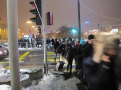 [*] W okresie funkcjonowania przejścia tymczasowego na ulicy Emilii Plater od 21.10.2010 do 22.12.2010 (60 dni) można przyjąć, że korzystało z niego w najbardziej uczęszczanych godzinach dziennych od 8 do 18 (10 godzin) ok. 50 osób na minutę (1 godzina ma 60 minut). Po przemnożeniu otrzymujemy ostrożny szacunek 60x10x50x60 = 1.800.000 pieszych użytkowników.