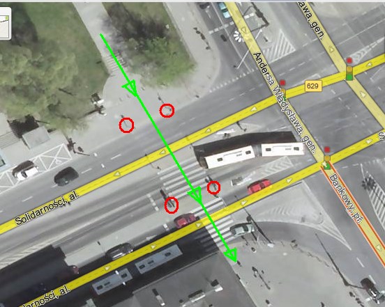 Na przejściu przez al. Solidarności jest komplet przycisków, lecz również w tej sytuacji zmusza to pieszych do wydłużenia trasy, np. w drodze z metra: