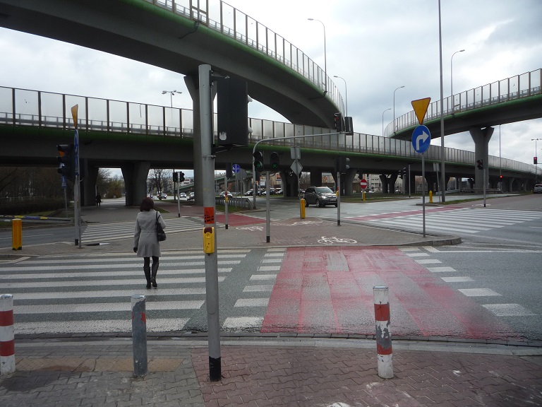 Obecnie krawężniki po obu stronach wydzielonego pasa do prawoskrętu oraz po południowej stronie wysepki są w praktyce uskokami na skutek zbyt dużej wysokości i/lub zbyt ostrego kąta nachylenia.