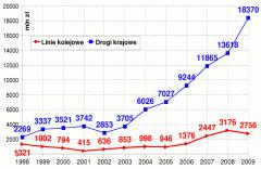 Tak było za wszystkich rządów po 1989 roku. Od 20 lat wydatki na infrastrukturę kolejową są wielokrotnie, nawet 10-krotnie mniejsze niż wydatki na same tylko drogi krajowe (obie sieci mają po ok. 19 tys. km długości). Różnice jeszcze pogłębiły się po 2003 roku.