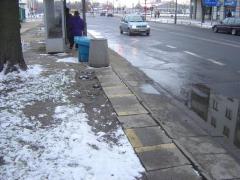 Ponadto chodnik peronu nie pokrywa się z samym przystankiem, wyznaczonym znakiem P-17, zaś jego substandardowa szerokość nie pozwala na prawidłowe ustawienie kosza na śmiecie.