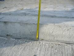 Zauważmy, że niski betonowy krawężnik przechodzi płynnie w wyniesiony, wykonany z kamienia. I tutaj chodnik znalazł się na wysokości 20 cm nad poziomem nawierzchni zatoki, czyli wsiadając do autobusu pokonamy różnicę poziomów wynoszącą tylko około 12 cm.