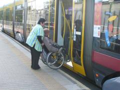 Kierowca widząc ją zatrzymuje autobus w ten sposób, że odpowiednie drzwi wypadają na wysokości tego miejsca, dzięki czemu można będzie w razie potrzeby użyć rampy.