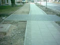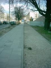 Faktycznie, ścieżka (po prawej) czekała tylko na wylanie (lub ułożenie) nawierzchni. Chodnik obok był już gotów, a na ścieżce wysypano już podsypkę.
