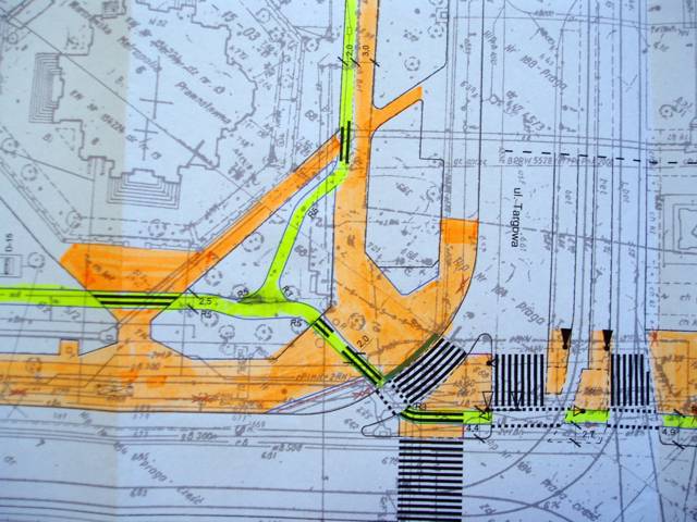 Łącznik wzdłuż Targowej ułatwia wjechanie na ścieżkę z ul. Wileńskiej. Być może konieczne będą jeszcze drobne korekty przebiegu w okolicach kiosku.