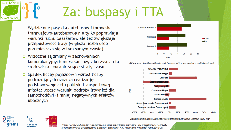 W zakresie działań bezpośrednio dotyczących komunikacji zbiorowej, miasto zazwyczaj zdaje się być za system transportowym przyjaznym dla miasta i jego mieszkańców. Stopniowo wdrażane jest uprzywilejowanie komunikacji zbiorowej, co korzystnie wpływa na przepustowość tras, zachęcając mieszkańców do korzystania z bardziej efektywnych środków transportu niż samochód.