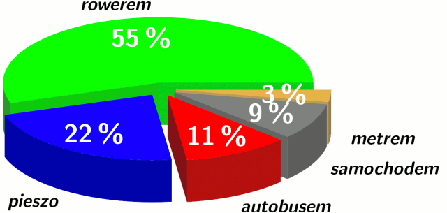 Tylko 9% ankietowanych wyraziło zamiar dojazdu do ratusza własnym samochodem, ponad połowa chce to robić rowerem, a w sumie ponad 3/4 przy użyciu własnych mięśni.