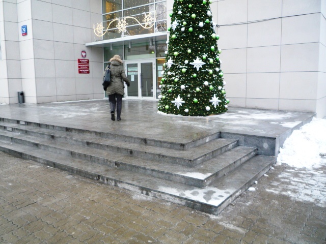 4. Odmawiaj ustawienia stojaków na wolnej przestrzeni po prawej od wejścia twierdząc, że bezpośrednio przy ścianie budynków odbywa się ruch pieszy osób wychodzących z urzędu, a jednocześnie zezwalaj na stawianie tam np. choinki.