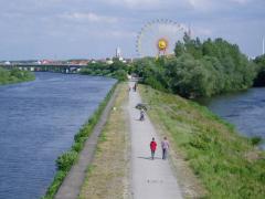 Jedna z czterech (!) równoległych tras rowerowych wzdłuż Dunaju - wjazd do centrum pomiędzy Nordarm a Schleusenkanal, tzw. Pfaffensteiner Weg. Dla Polaków ścieżka ta posiada wartości nostalgiczne - jako jedna z niewielu wyłożona jest kostka betonową...