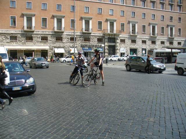 Pewnym utrudnieniem jest natomiast zabytkowy rzymski bruk, ale my, Polacy, zwyczajni jesteśmy po gorszych rzeczach jeździć, więc nas to nie przeraża. Można zauważyć, że w zabytkowym mieście nie ma za bardzo jak budować dróg rowerowych, zatem ograniczenia wobec motoryzacji i stojaki są najlepszą zachętą dla tego środka transportu