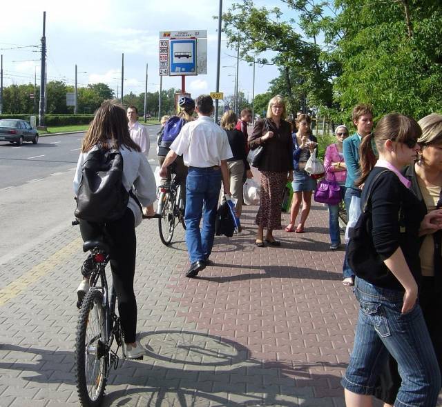 Ruch rowerowy podporządkowany ruchowi pieszemu.