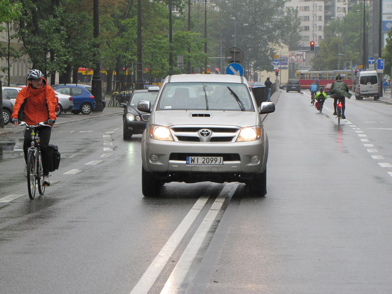 Toyota zachowała bezpieczny odstęp - ale kosztem przejechania podwójnej ciągłej.