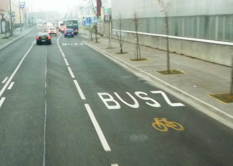 Aby ktoś nie pomyślał, że ten bike-buspas przy parlamencie to równie osamotniony unikat jak warszawski kontrapas, dodajmy jeszcze jedno zdjęcie z zupełnie innej części miasta.