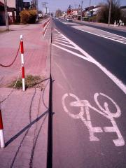 Cieszy nas, że pojawił się precedensowy pas rowerowy i Warszawa dogoniła tym samym Kraków [zobacz >>>], Poznań [zobacz >>>], a poniekąd nawet Mińsk Mazowiecki (zdjęcie obok) gdzie stosowanie tego rozwiązania nie stwarzało problemów. Pełne zadowolenie przyjdzie jednak dopiero wtedy, gdy pas na jezdni nie pozostanie odosobnionym eksperymentem lecz utoruje drogę kolejnym, włączonym w sieć rowerową, a nie oderwanym od niej.