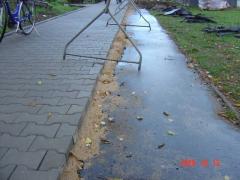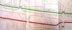 W zeszłym roku po północnej stronie ul. Rudnickiego zniszczono całkiem dobry asfaltowy chodnik, by w jego miejsce wybudować ciąg pieszo-rowerowy (na poniższym szkicu sprzed dwóch lat ten odcinek oznaczono na żółto).