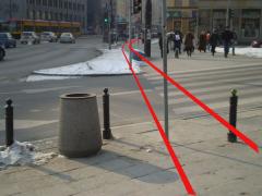 Przed skrzyżowaniem z ul. Marszałkowską konieczność ominięcia zejścia do przejścia podziemnego.