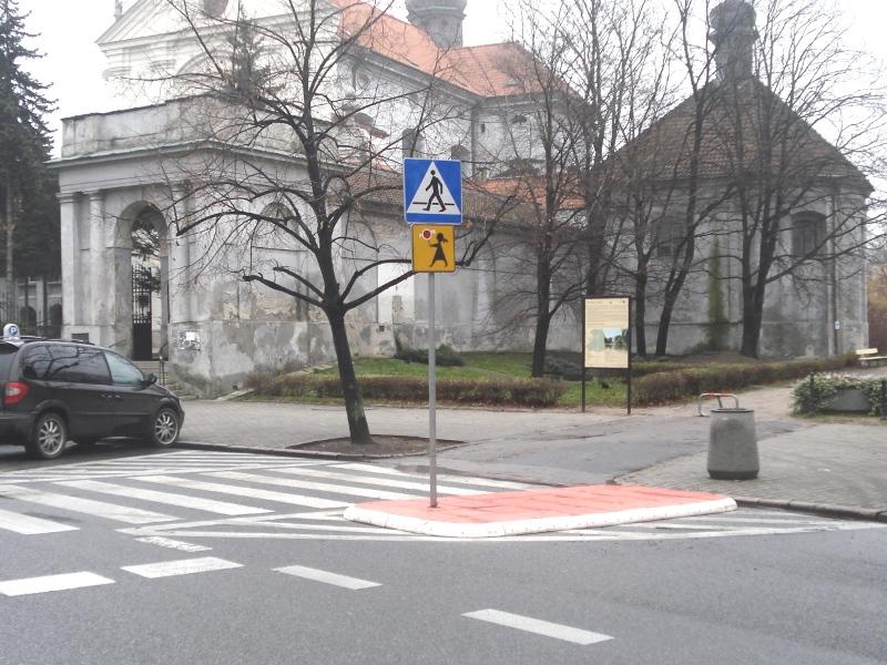 Przejdźmy do poszczególnych części - tutaj widać wysepkę między pasami ruchu a chodnikiem na powierzchni wyłączonej z ruchu - powinna być jednak nieco większa, a sama powierzchnia wyłączona z ruchu powiększona, aby szerokość przejścia dla pieszych niechronionego przez azyl była mniejsza.