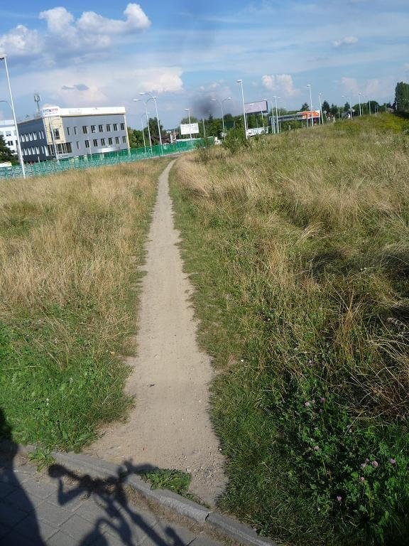 Nieefektywność takiego rozwiązania widoczna jest w tym, że duża część pieszych i rowerzystów korzysta ze znacznie prostszej trasy (por. zdjęcia w załączniku).