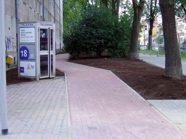 Czy pozostawienie budki telefonicznej tuż przy ścieżce jest rozsądne? Chwila zastanowienia nad bezpieczeństwem użytkowników obu podpowiada, by tego nie robić. Wykonawca znany z niedoczasu najwidoczniej nie miał i tej chwili do stracenia.