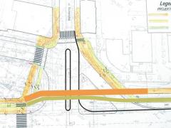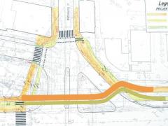 B. Prowizoryczny, z przejazdem dla rowerów i przejściem dla pieszych w miejscu istniejącego przedeptu. Prowizoryczność wariantu polega na tym, że po zrealizowaniu jednej z projektowanych równolegle inwestycji drogowych (Obwodnicy Śródmiejskiej lub ul. Tysiąclecia) pozostawiony prawoskręt będzie właściwie niewykorzystywany.